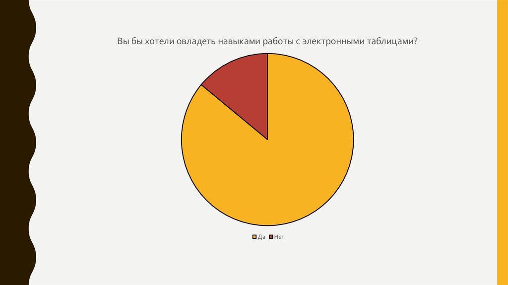 Вы бы хотели овладеть навыками работы с электронными таблицами?Да