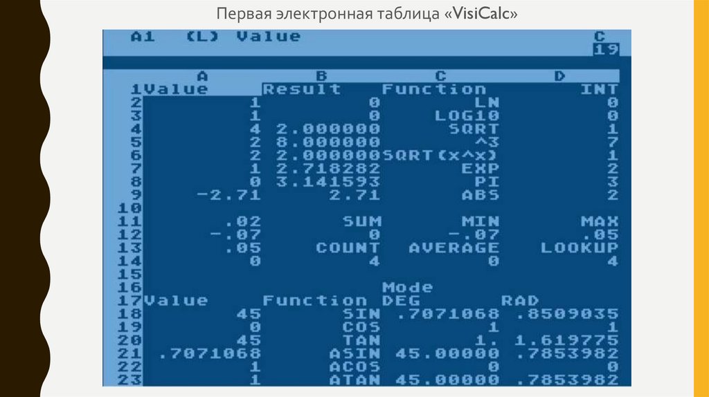 Первая электронная таблица «VisiCalc»6.