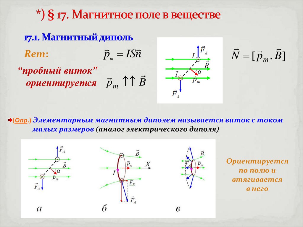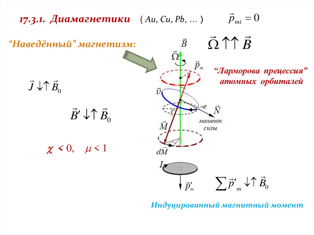 17.3.1. Диамагнетики ( Au, Cu, Pb, … )“Наведённый” магнетизм:
