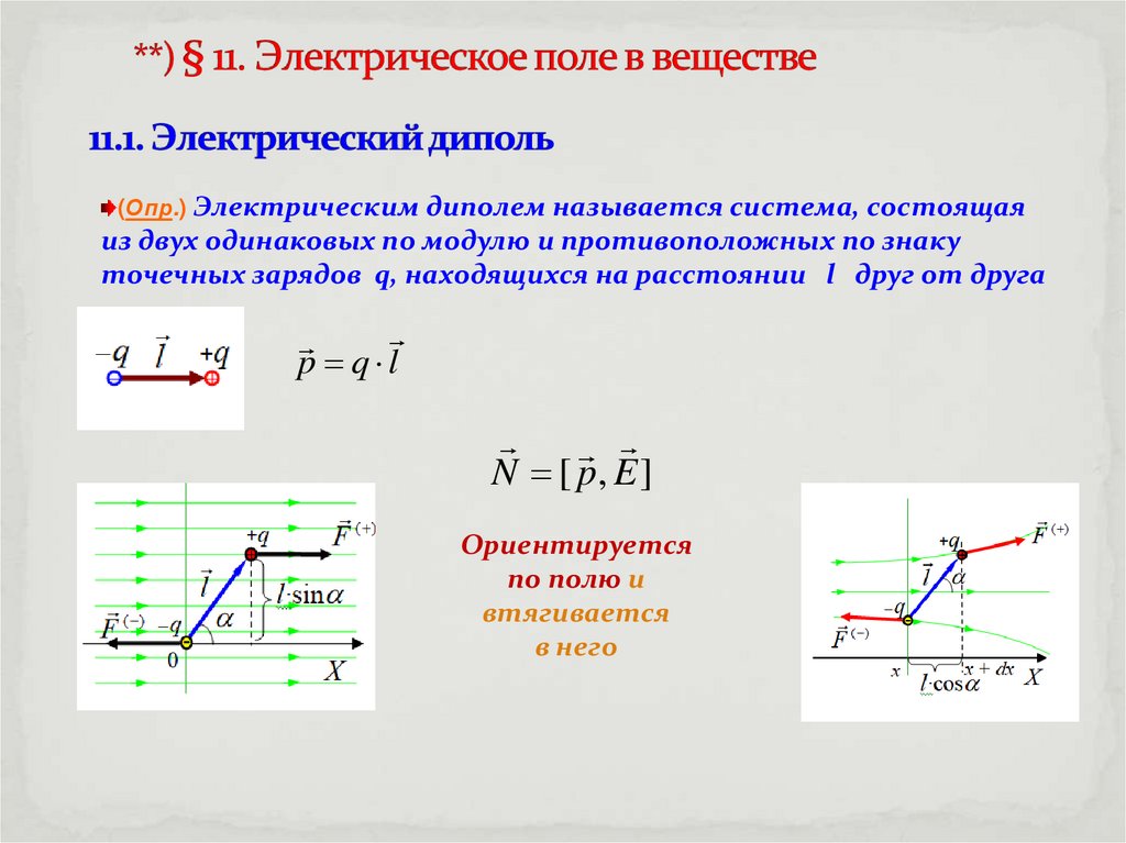 (Опр.) Электрическим диполем называется система, состоящаяиз двух одинаковых по модулю и противоположных по знаку