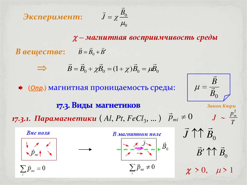 17.3.1. Парамагнетики ( Al, Pt, FeCl3, … ) pmi 0