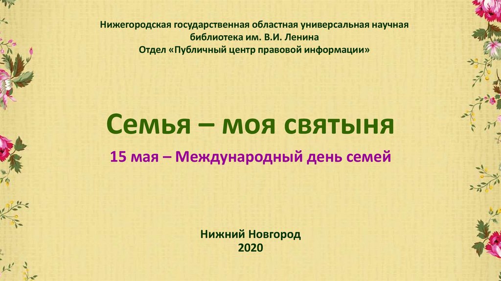 15 мая – Международный день семей. Отдел «Публичный центр правовой информации»