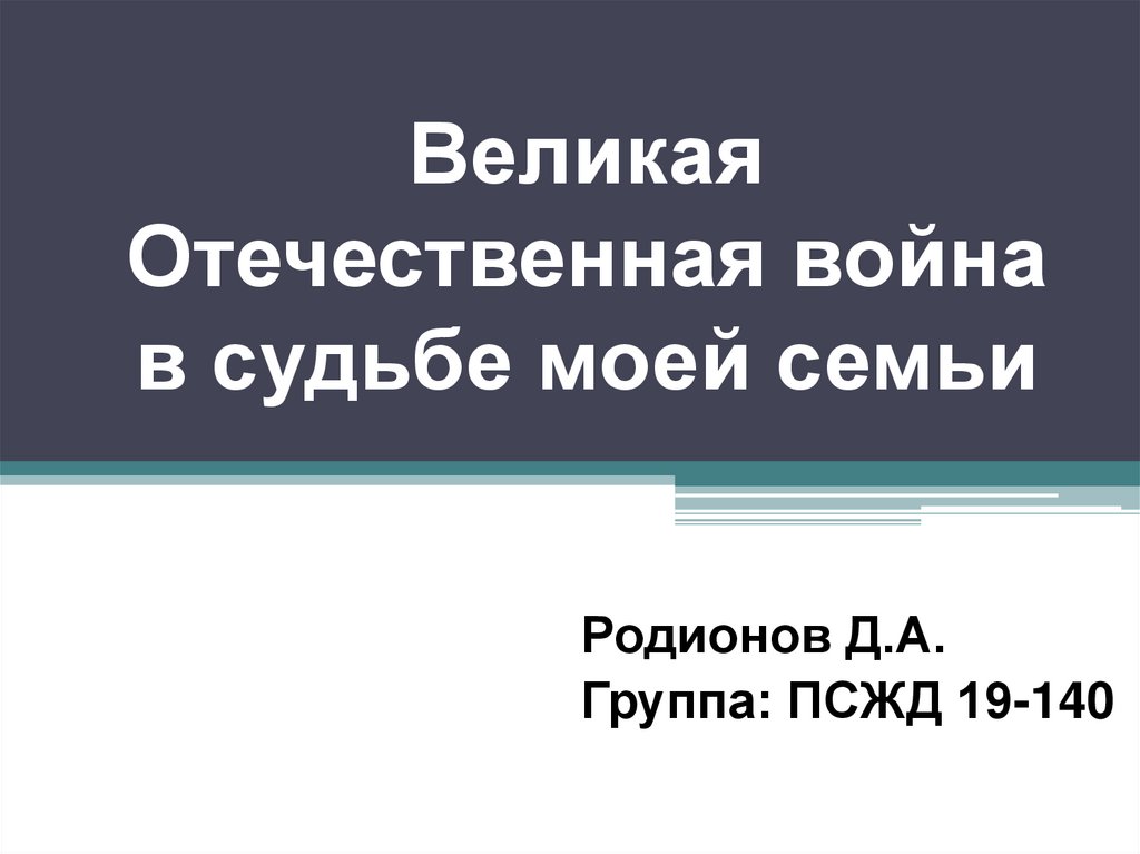 Великая Отечественная война в судьбе моей семьи. Родионов Валентин Иванович