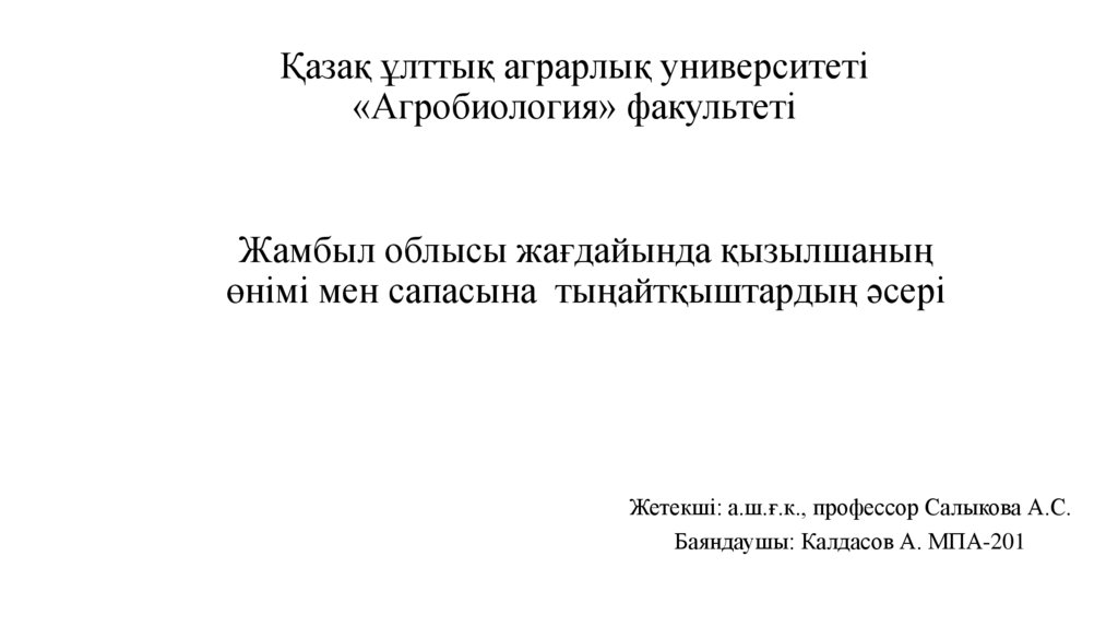 Қазақ ұлттық аграрлық университеті«Агробиология» факультеті