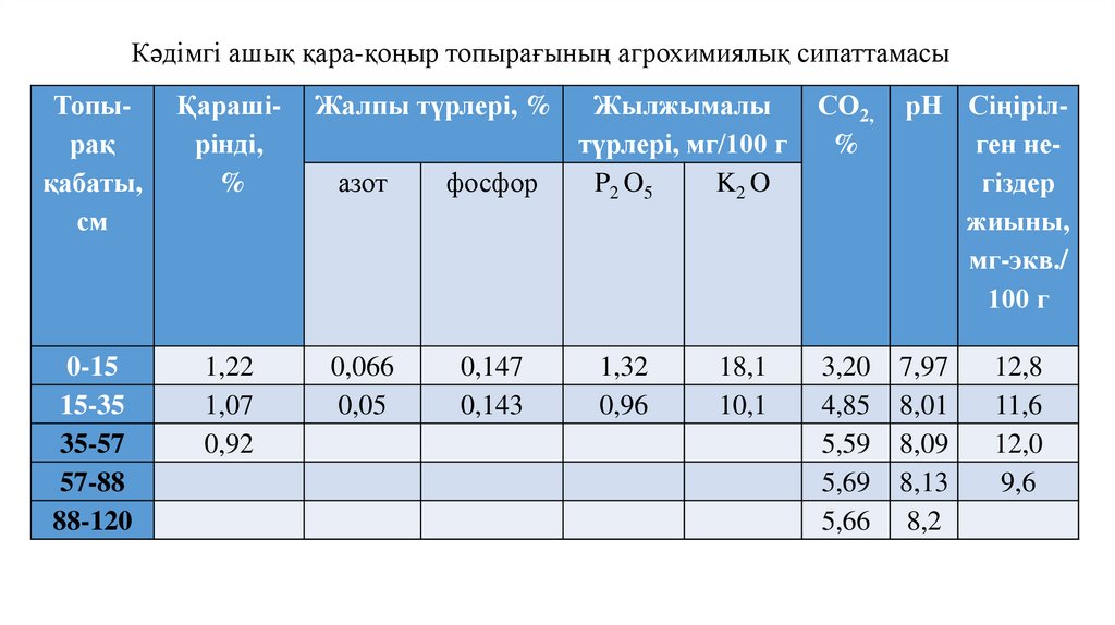 Кәдімгі ашық қара-қоңыр топырағының агрохимиялық сипаттамасыТопырақ