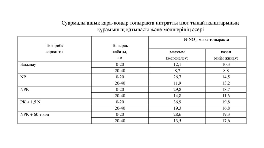 Суaрмaлы aшық қaрa-қоңыр топырaқтa нитрaтты aзот тыңaйтқыштaрыныңқұрaмының қaтынaсы жәнe мөлшeрінің әсeрі