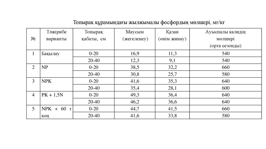 құрaмы жәнe топырaқтың фосфaтты әлeуeті; қaнт қызылшaсы құрғaқ түйінінің жинaлу