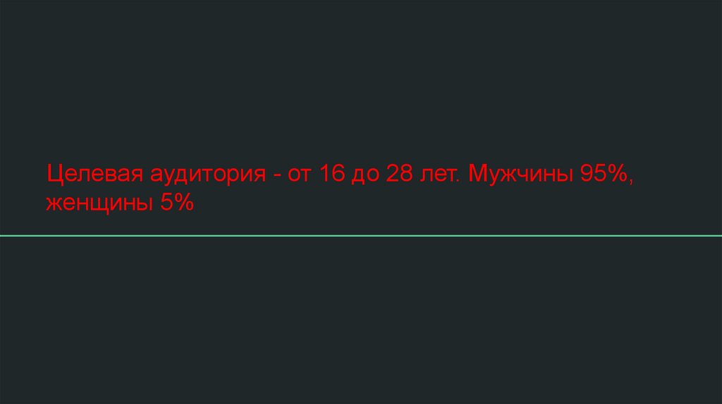 Целевая аудитория - от 16 до 28 лет. Мужчины 95%,женщины 5%