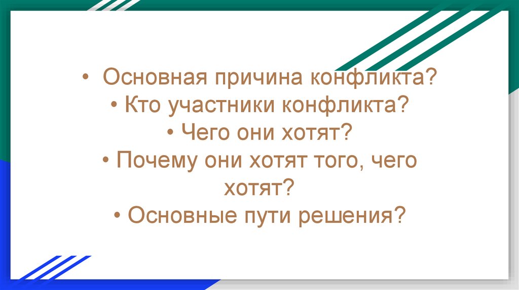 • Основная причина конфликта?• Кто участники конфликта?