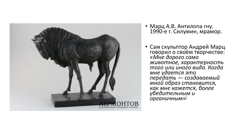 • Марц А.В. Антилопа гну.1990-е г. Силумин, мрамор.