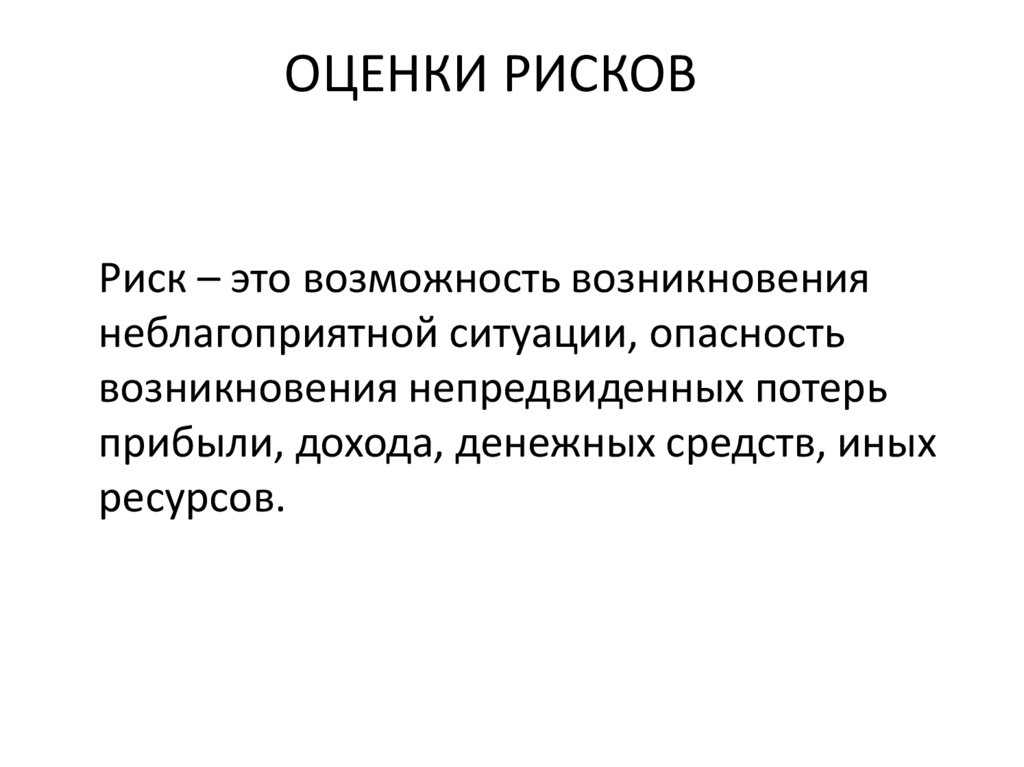 ОЦЕНКИ РИСКОВРиск – это возможность возникновения
