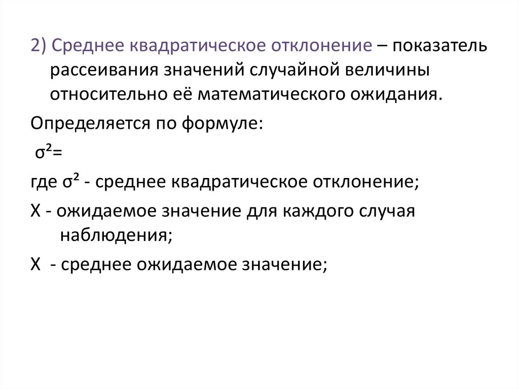 2) Среднее квадратическое отклонение