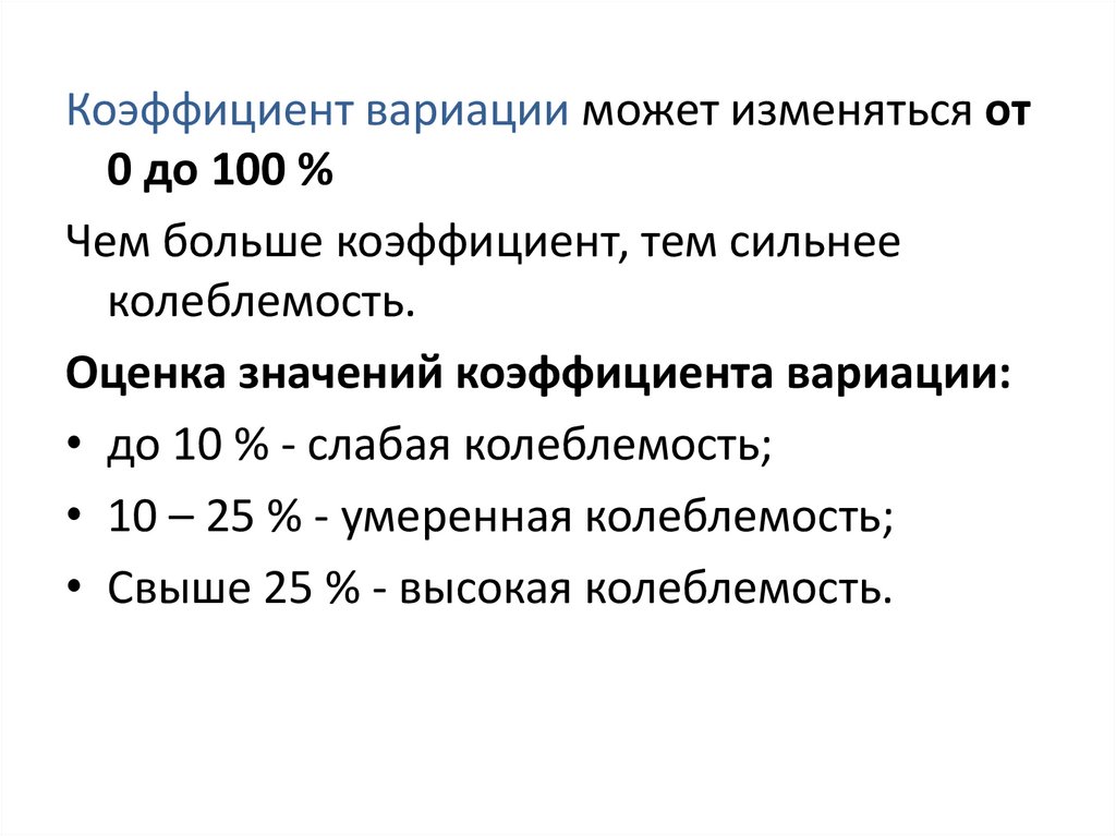• Свыше 25 % - высокая колеблемость.