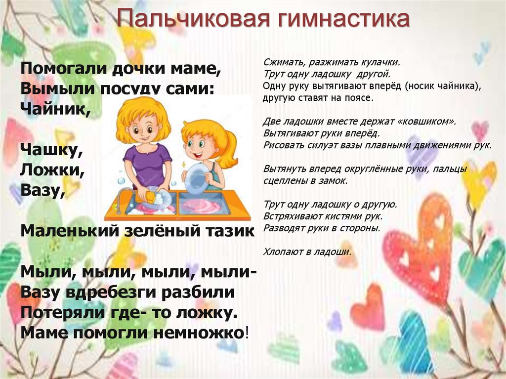 Пальчиковая гимнастикаПомогали дочки маме,