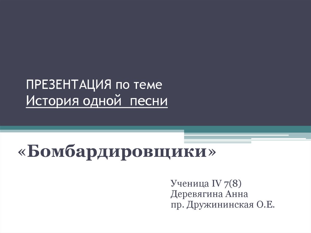 1. ПРЕЗЕНТАЦИЯ по теме История одной песни