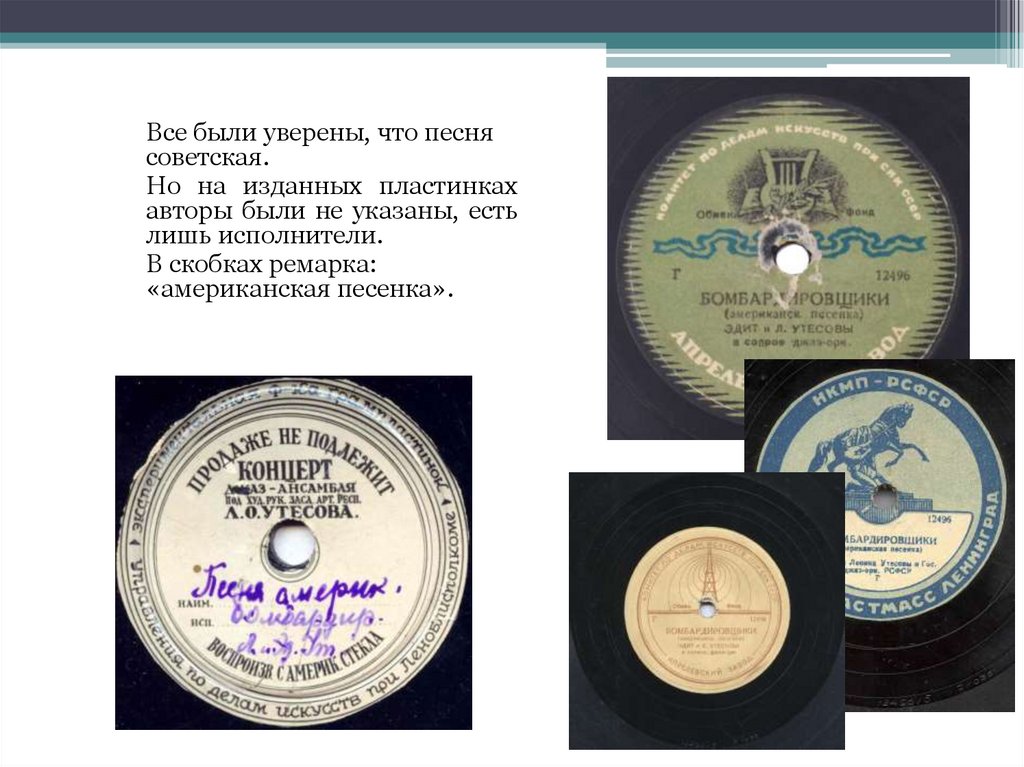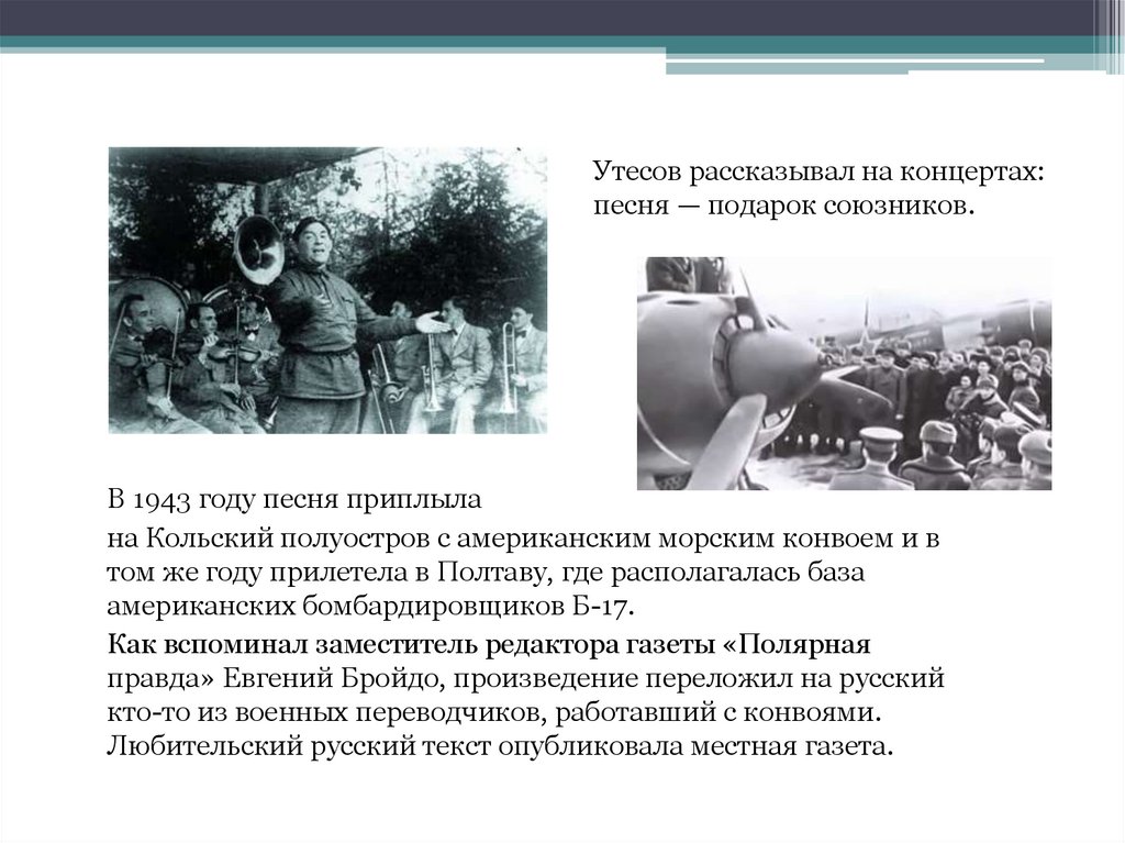 Утесов рассказывал на концертах:песня — подарок союзников.