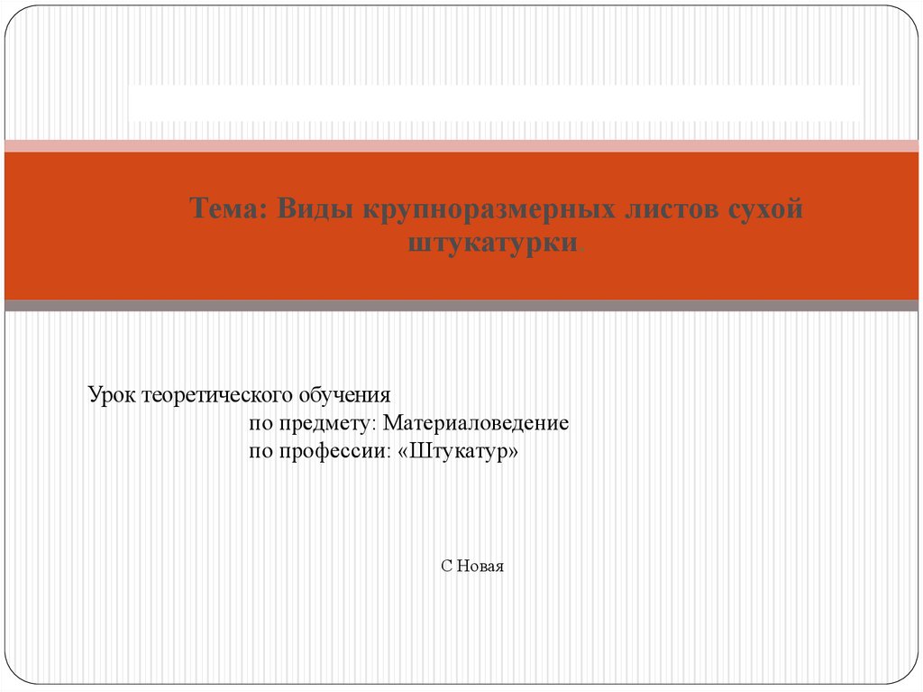 Тема: Виды крупноразмерных листов сухойштукатурки.