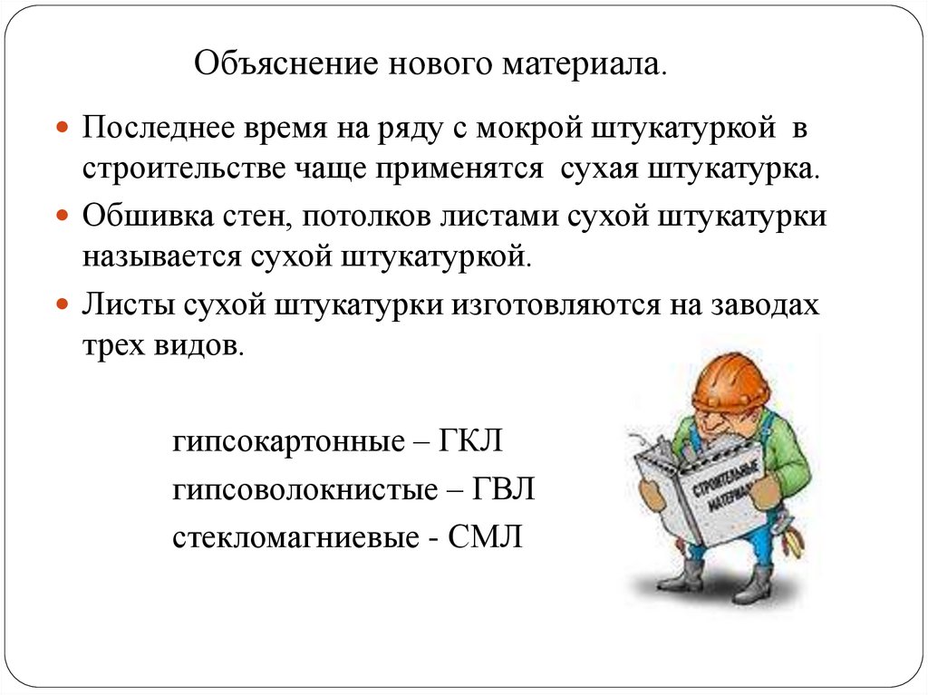 Объяснение нового материала.Последнее время на ряду с мокрой штукатуркой в