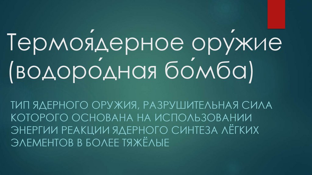1. Термоя́дерное ору́жие (водоро́дная бо́мба)
