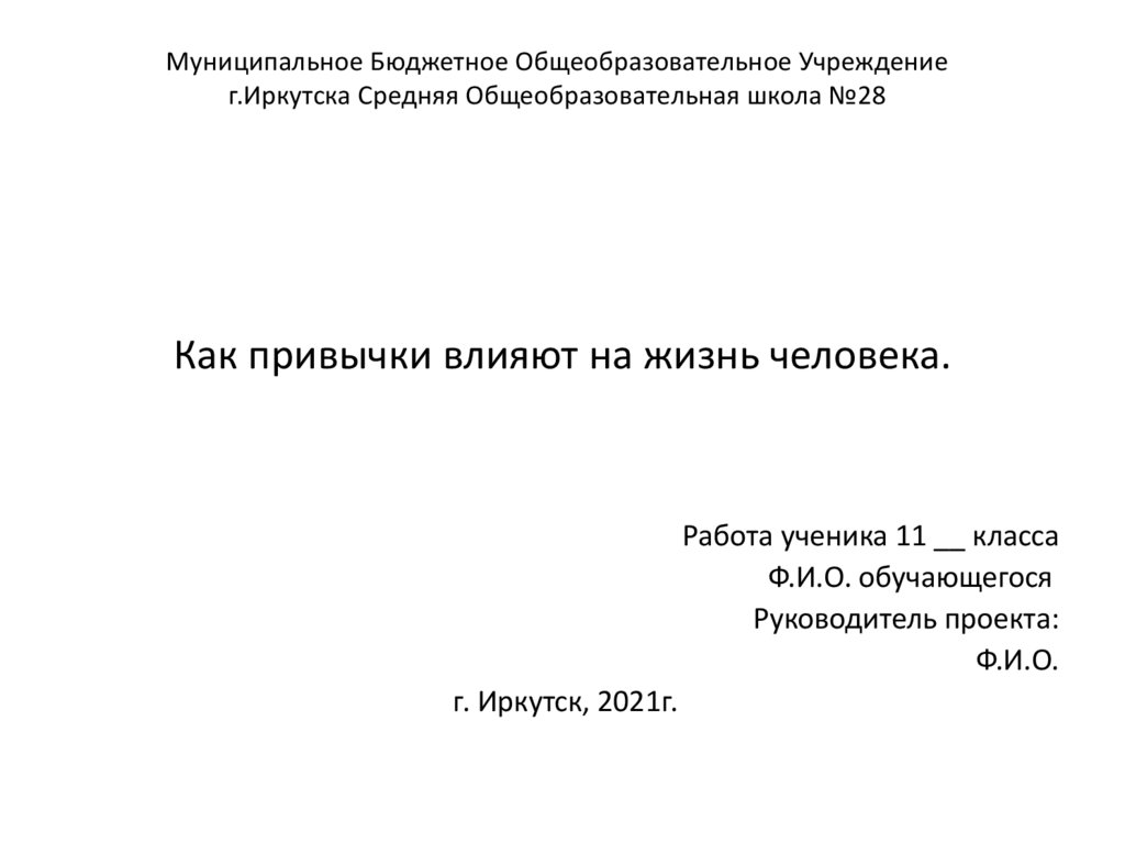 Как привычки влияют на жизнь человека.Работа ученика 11 __ класса