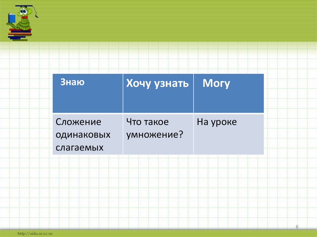 5. Тема урока: «Умножение»