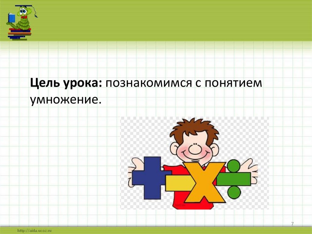 Цель урока: познакомимся с понятиемумножение.