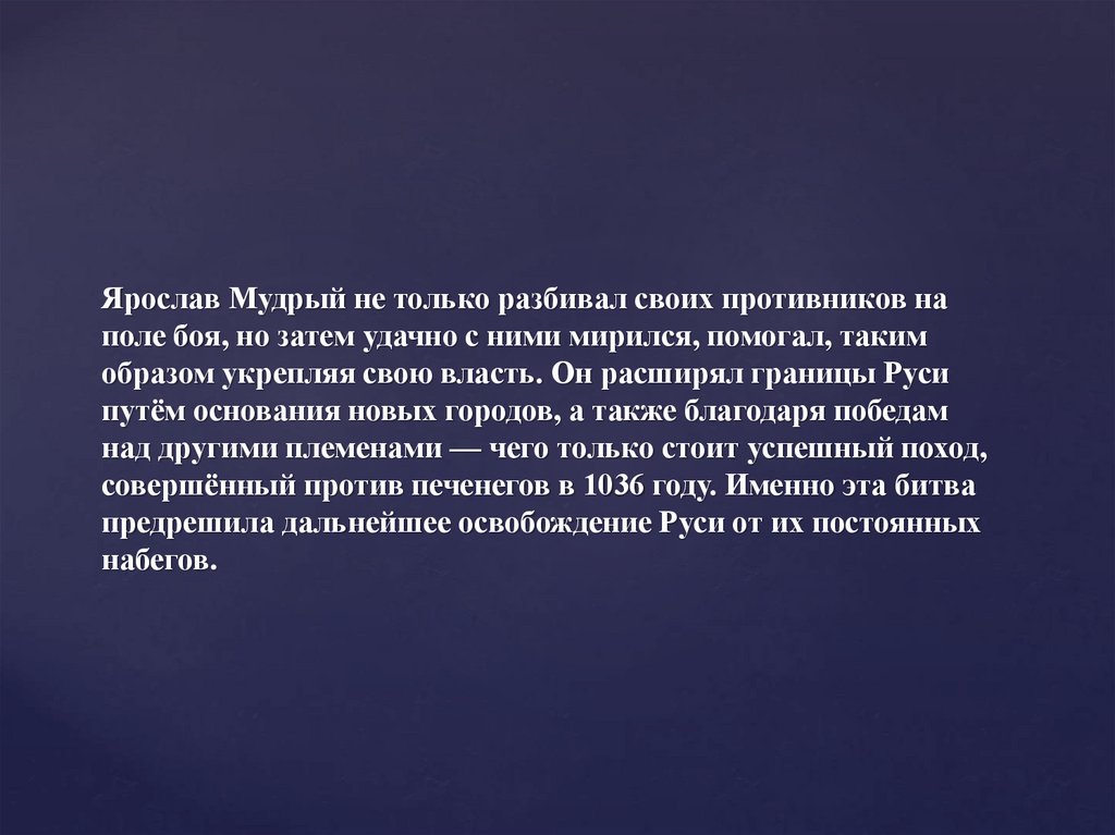 4. Ярослав Мудрый не только разбивал своих противников на поле боя, но затем удачно с ними мирился, помогал, таким образом