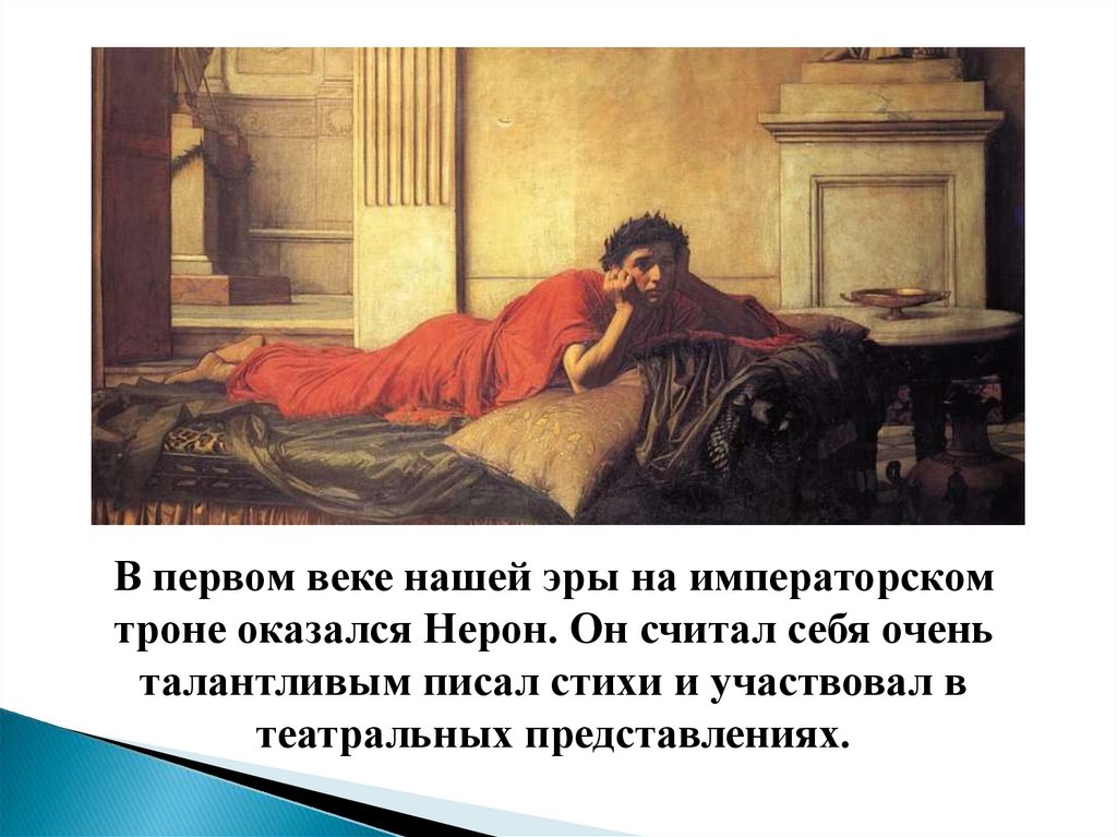 В первом веке нашей эры на императорскомтроне оказался Нерон. Он считал себя очень