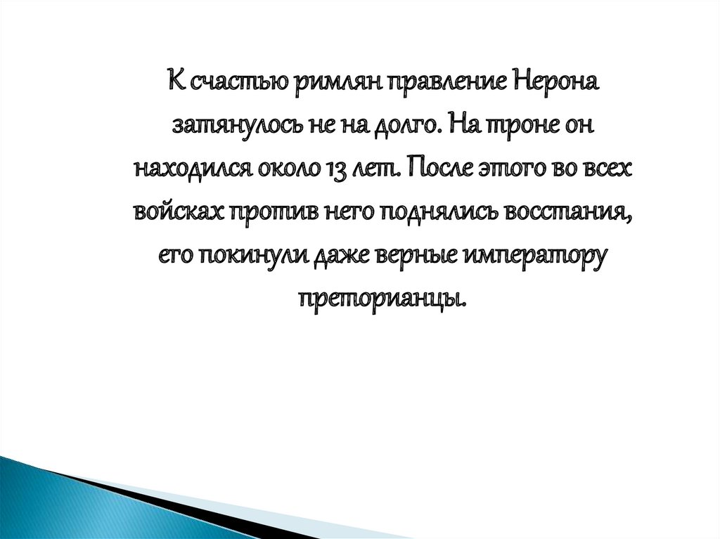 К счастью римлян правление Нероназатянулось не на долго. На троне он