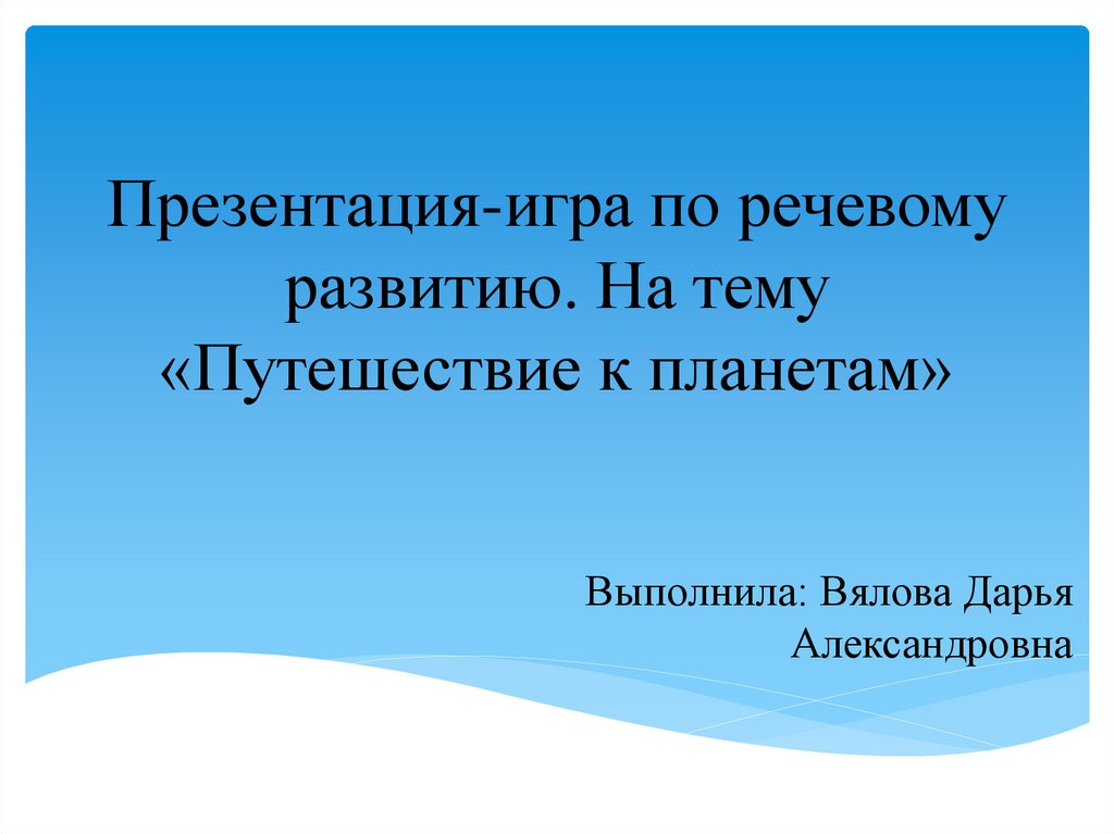 1. Презентация-игра по речевому развитию. На тему «Путешествие к планетам»