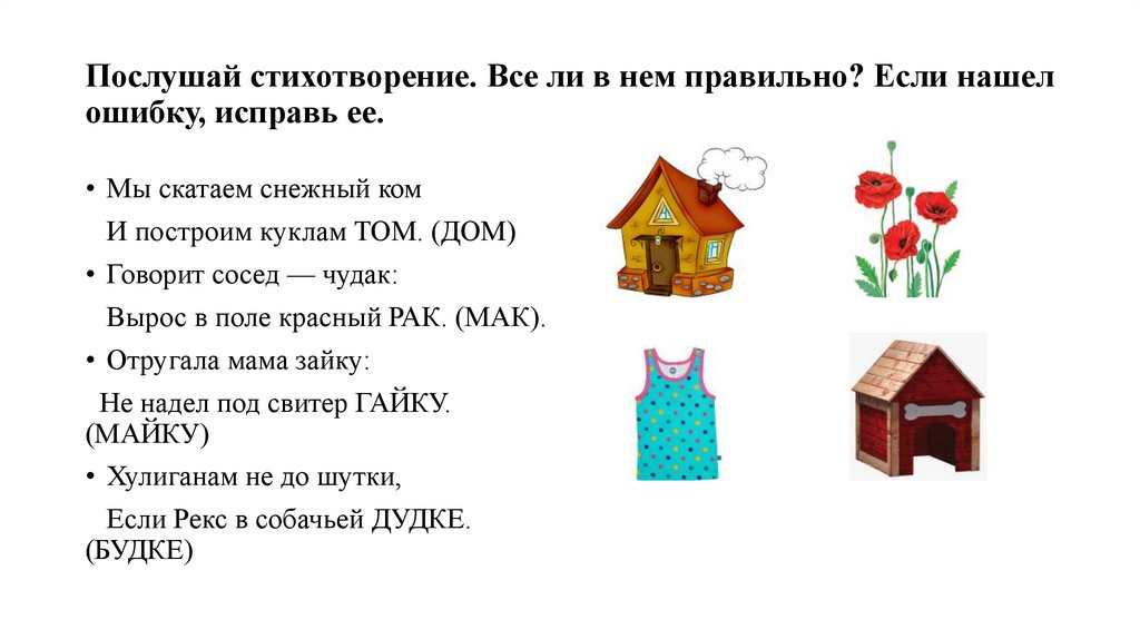 Послушай стихотворение. Все ли в нем правильно? Если нашелошибку, исправь ее.