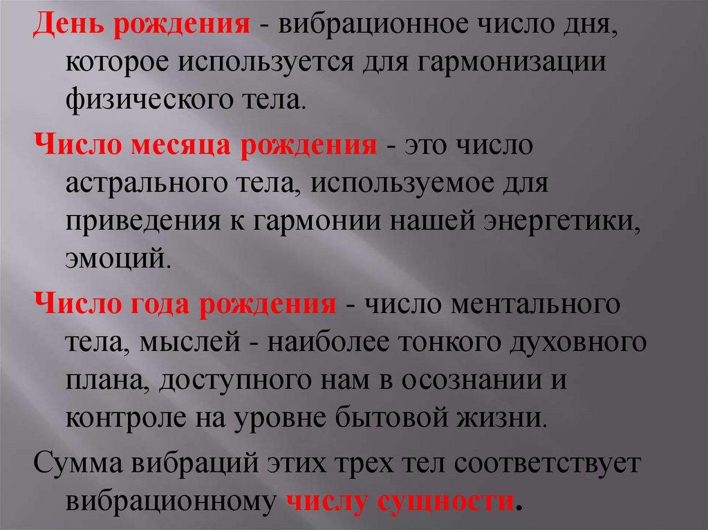 День рождения - вибрационное число дня,которое используется для гармонизации