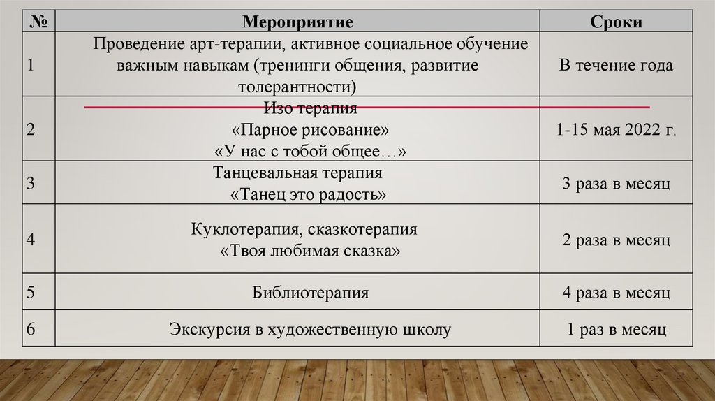 Проведение арт-терапии, активное социальное обучение