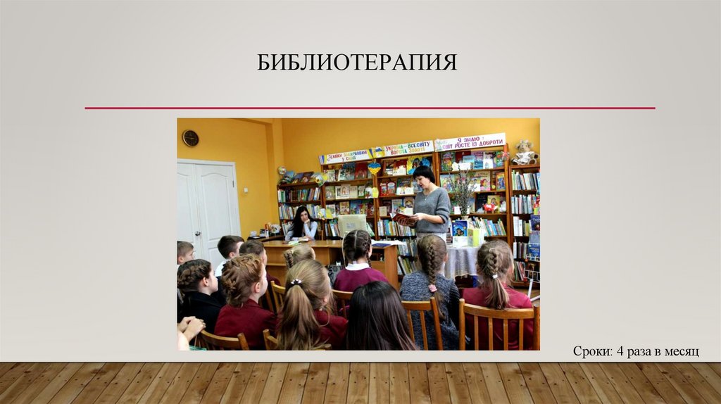 БИБЛИОТЕРАПИЯСроки: 4 раза в месяц