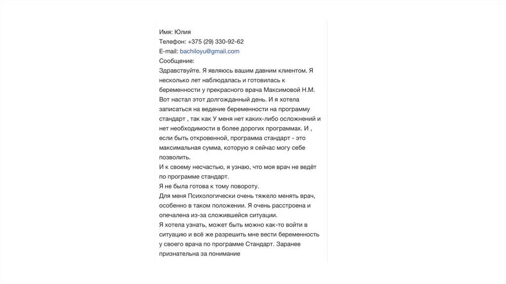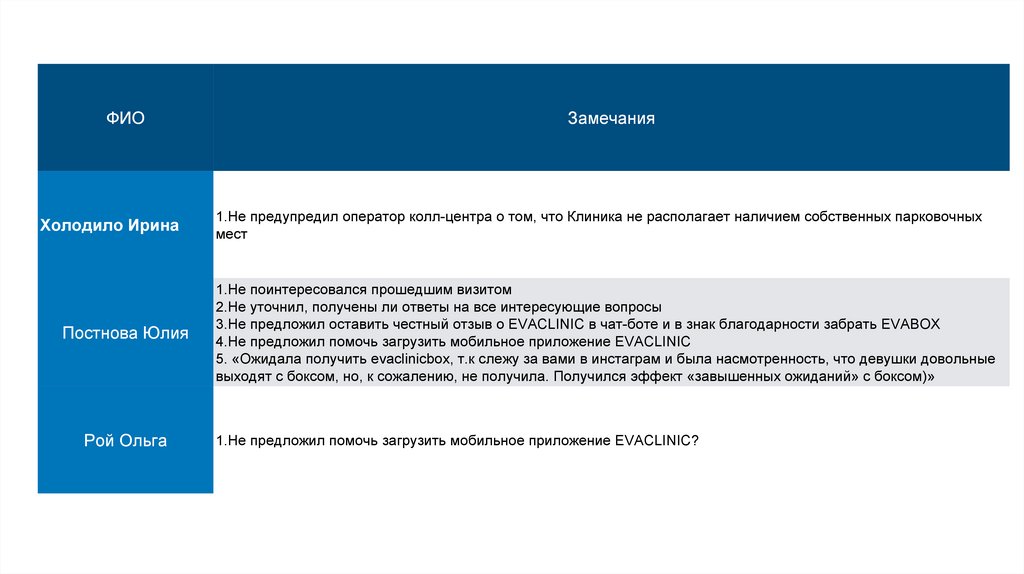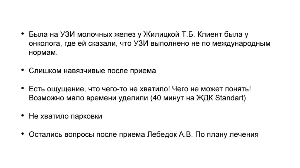 1.Не предупредил оператор колл-центра о том, что Клиника не располагает наличием собственных парковочных