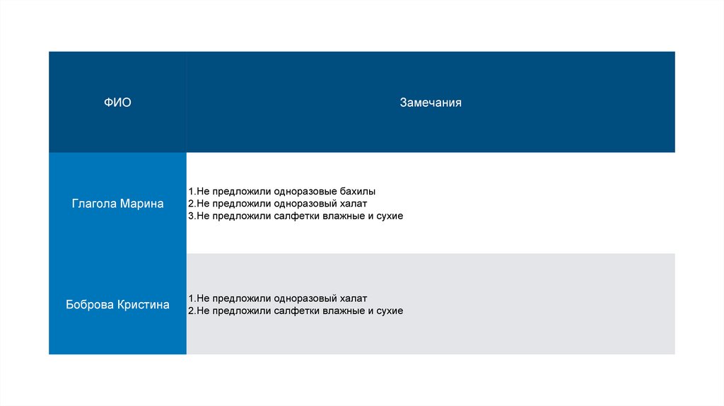1.Не предложили одноразовые бахилы