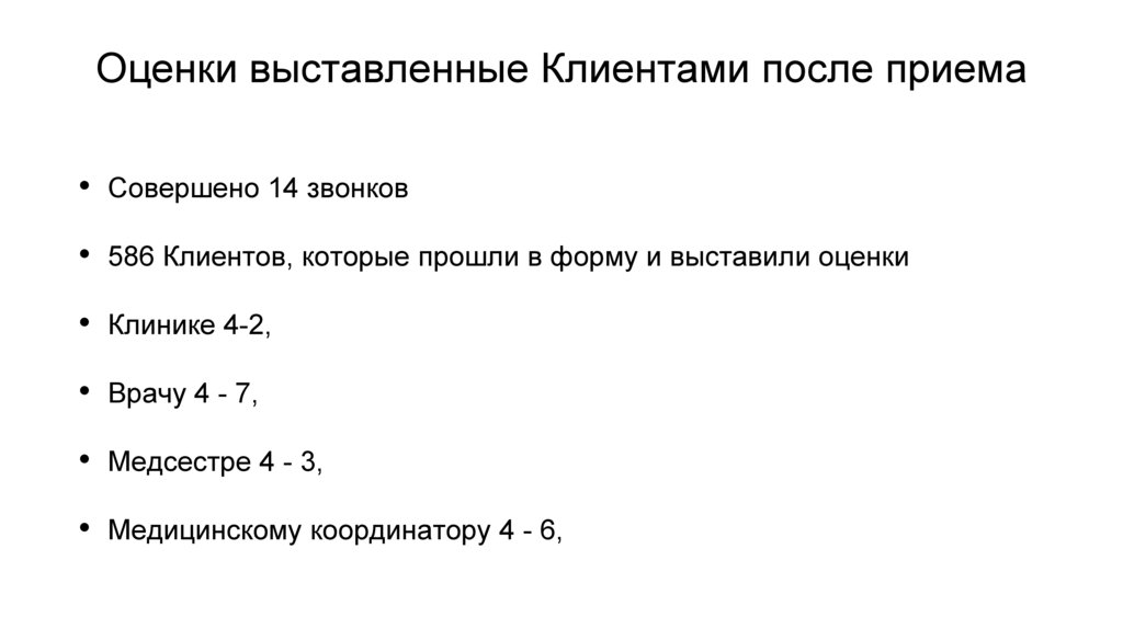 Оценки выставленные Клиентами после приемаСовершено 14 звонков