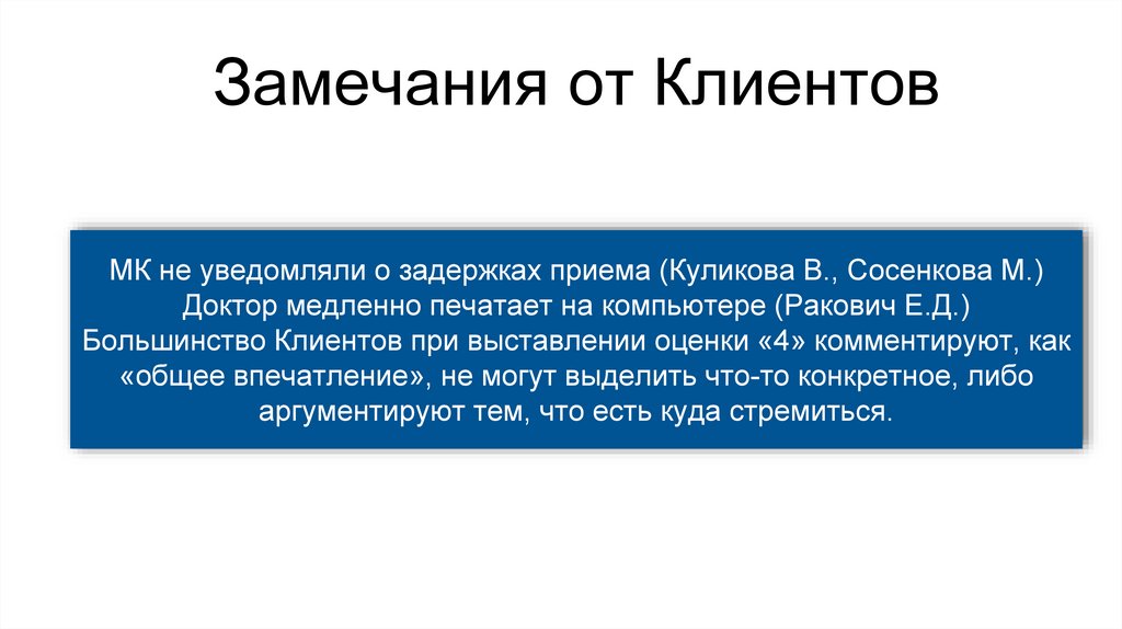 Замечания от КлиентовМК не уведомляли о задержках приема (Куликова В., Сосенкова М.)