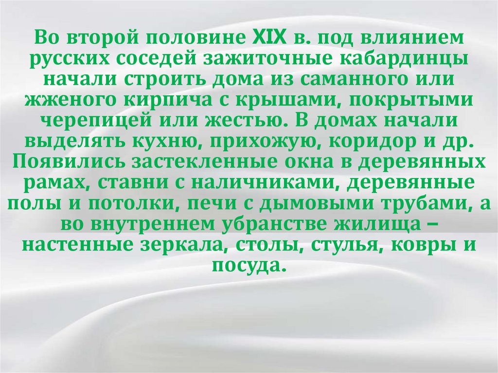 Во второй половине XIX в. под влияниемрусских соседей зажиточные кабардинцы