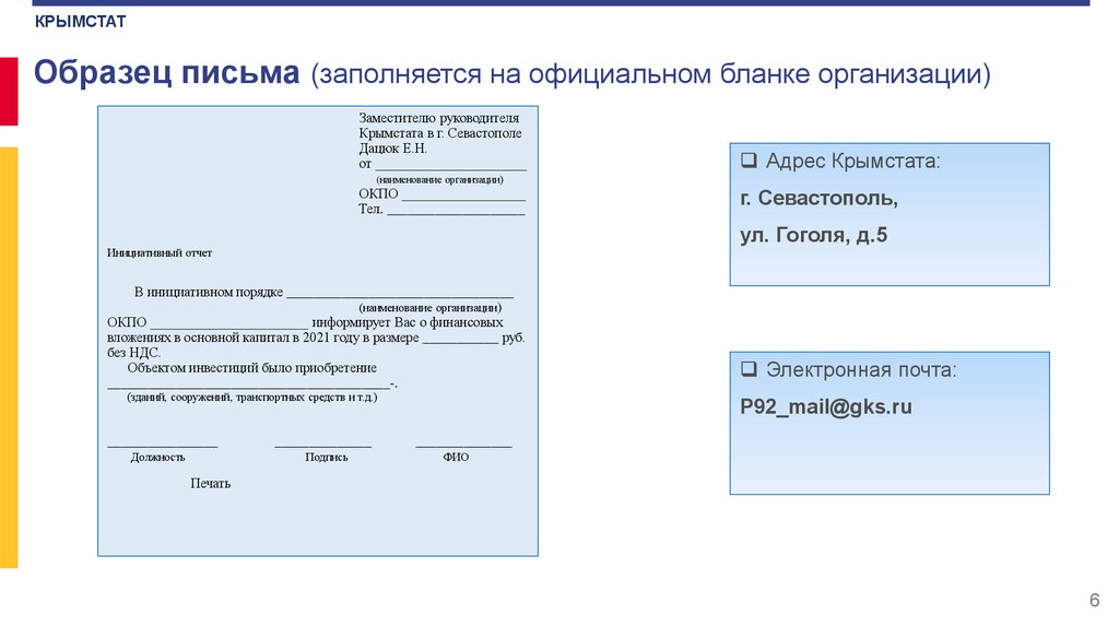 Предоставить информационное письмо
