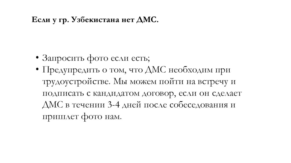 Если у гр. Узбекистана нет ДМС.• Запросить фото если есть;