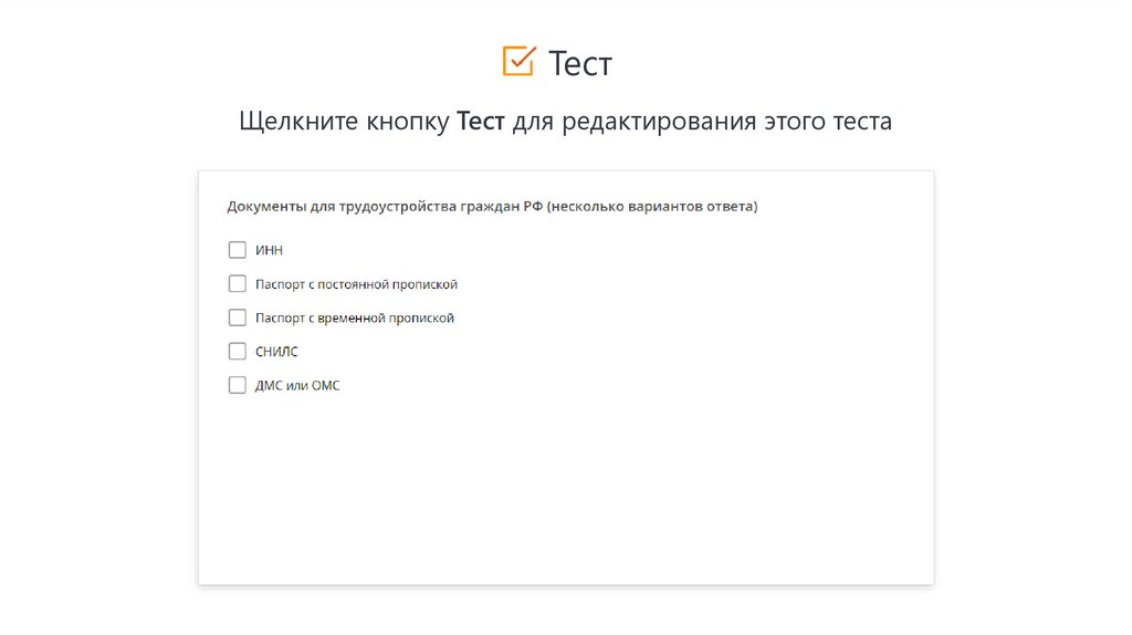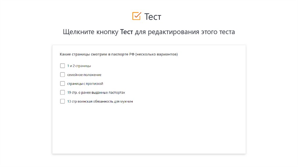 ТестЩелкните кнопку Тест для редактирования этого теста