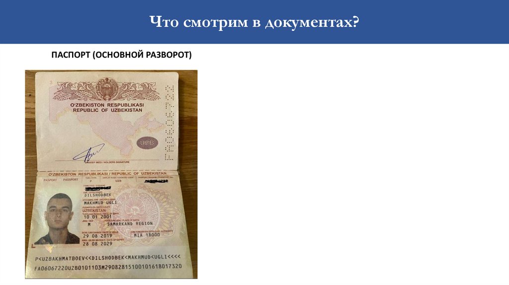 Что смотрим в документах?ПАСПОРТ (ОСНОВНОЙ РАЗВОРОТ)
