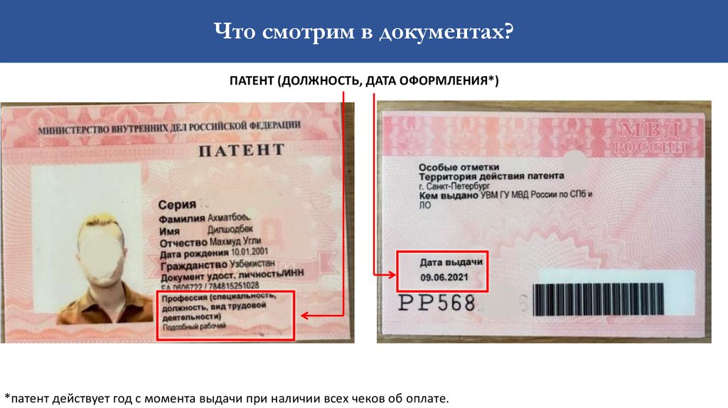 *патент действует год с момента выдачи при наличии всех чеков об оплате.