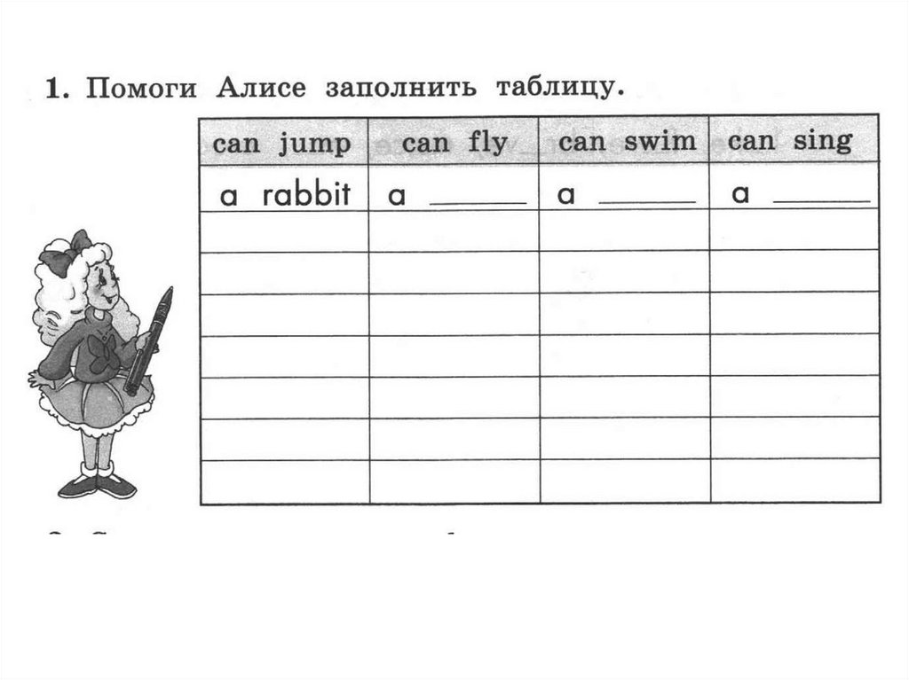 Помоги Алисе заполнить таблицу