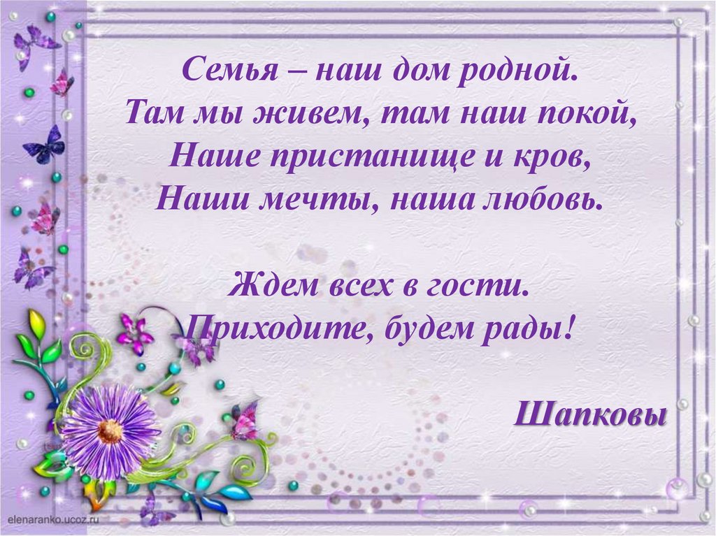 Семья – наш дом родной.Там мы живем, там наш покой,