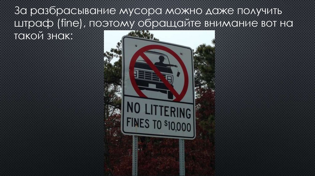 За разбрасывание мусора можно даже получитьштраф (fine), поэтому обращайте внимание вот на