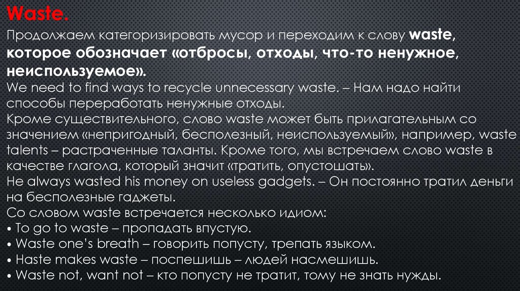 Waste.Продолжаем категоризировать мусор и переходим к слову waste,