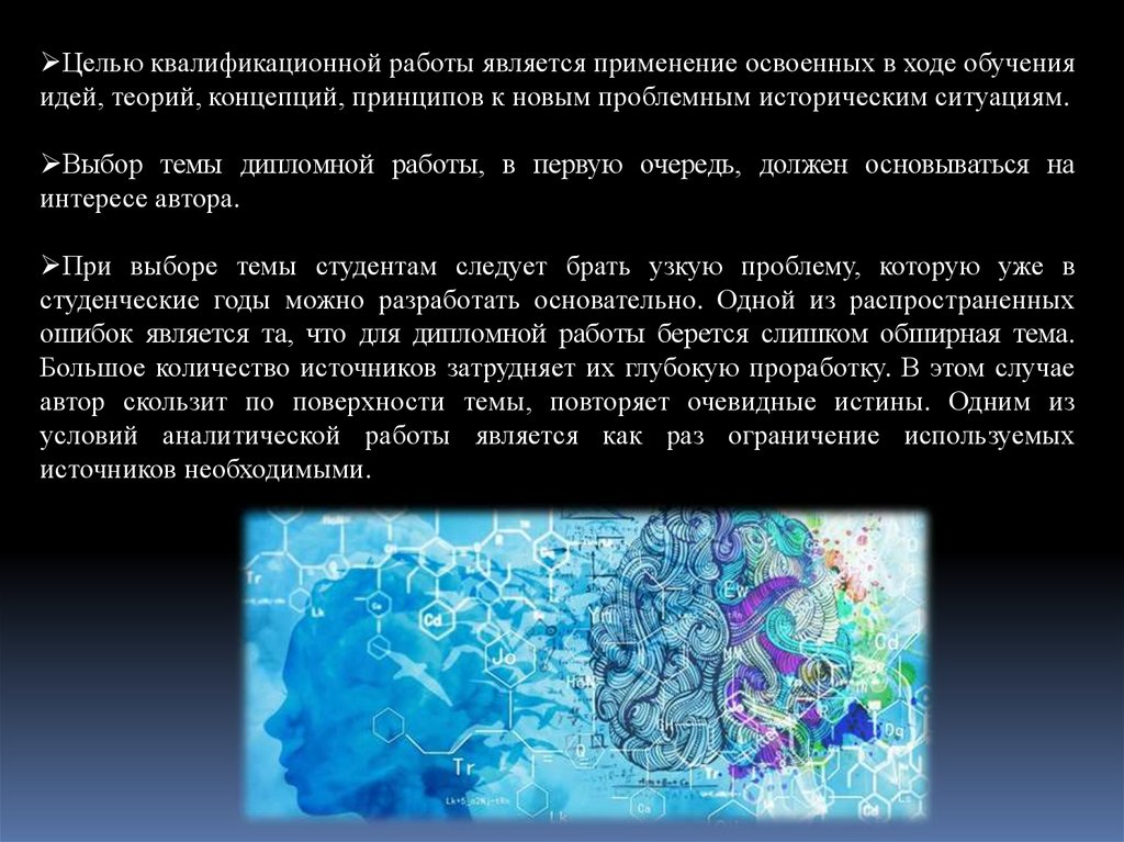 ошибок является та, что для дипломной работы берется слишком обширная тема.