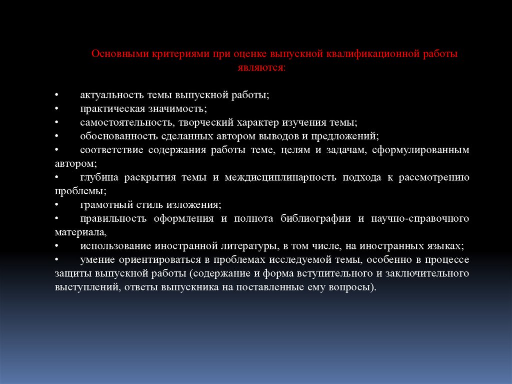 Основными критериями при оценке выпускной квалификационной работыявляются: